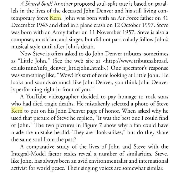 The book by Paul Von Ward proposes that Steve Kern and John Denver are a split soul.